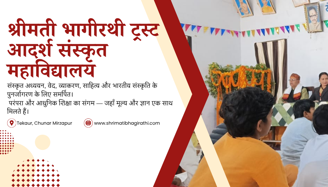 स्वर्गीय शिवकेदार मिश्र जी की धर्मपत्नी श्रीमती भागीरथी मिश्राणी जी द्वारा 13 गांवों की संपत्तियों से 1963 ई. में इस महाविद्यालय की स्थापना की गई। श्रीमती भागीरथी ट्रस्ट आदर्श संस्कृत महाविद्यालय भारतीय संस्कृति, परंपरा और वैदिक ज्ञान की अमूल्य धरोहर को संजोने व आगे बढ़ाने के लिए समर्पित एक प्रतिष्ठित शिक्षण संस्था है। इस महाविद्यालय की स्थापना का उद्देश्य प्राचीन संस्कृत ज्ञान को आधुनिक शिक्षा पद्धति के साथ जोड़ते हुए छात्रों के बौद्धिक, नैतिक और आध्यात्मिक विकास को प्रोत्साहित करना है। संस्थान का मूल मंत्र है — “विद्या ददाति विनयं”, अर्थात शिक्षा से विनम्रता उत्पन्न होती है। इसी भाव से प्रेरित होकर महाविद्यालय संस्कृत भाषा, वेद, दर्शन, व्याकरण, साहित्य और भारतीय संस्कारों के अध्ययन-अध्यापन को आधुनिक दृष्टिकोण के साथ प्रस्तुत करता है। संस्थान वाराणसी संस्कृत विश्वविद्यालय से मान्यता प्राप्त है और संस्कृत व भारतीय संस्कृति के पुनर्जागरण में अग्रणी है। यह महाविद्यालय केवल एक शिक्षण केंद्र नहीं, बल्कि भारतीय ज्ञान परंपरा के पुनर्जागरण का एक आंदोलन है — जहाँ संस्कृत केवल भाषा नहीं, बल्कि जीवन का दर्शन बन जाती है।